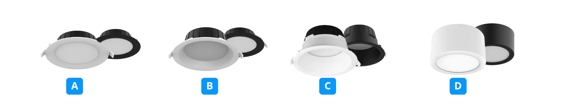 Con una scelta di tre dimensioni di taglio - 120 mm, 140 mm e 180 mm - questi downlight possono essere adattati a tutti i vostri progetti di illuminazione e alle esigenze dei vostri clienti.