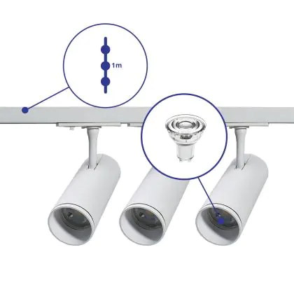 La tecnologia LED offre innumerevoli vantaggi; primo fra tutti il notevole risparmio energetico. Questi faretti a binario LED, infatti, consumano solo 3 watt pur avendo una potenza luminosa di 230 lm. Inoltre i LED non emettono sfarfallii e hanno un lungo ciclo di vita, che in questo caso è di 15000 ore, cosa che riduce i costi di manutenzione e sostituzione.