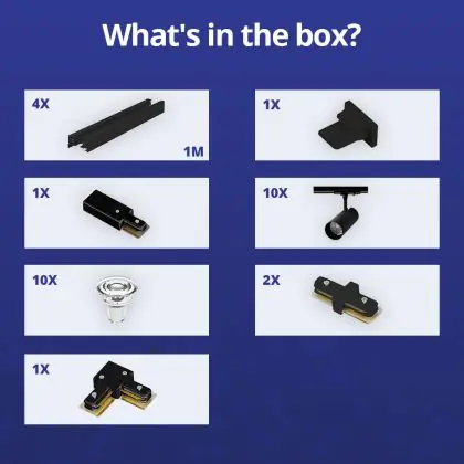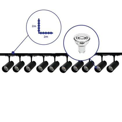 Descrizione Bright Choice Set completo 1-Fase Rail L 2 x 2 Metro Nero | incl. 10x Faretti + GU10 2700K 3W Dimmerabile + Tappo Di Chiusura, Connettore di Alimentazione e L -Connettore
