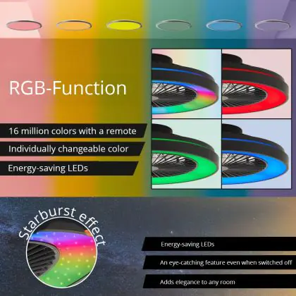 Brilliant Mazzaro Ventilatore Da Soffitto Plastica Nero 36W 4700lm - 830-865 CCT+RGB | 485mm - Telecomando Dimmerabile