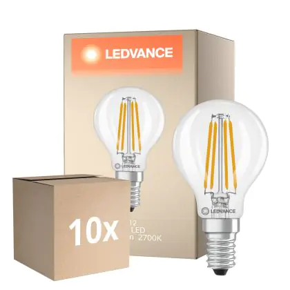 Confezione Multipack 10x Ledvance Classic LED E14 Pera Filamento Chiara 3.4W 470lm - 827 Bianco Molto Caldo | Sostitutiva 40W