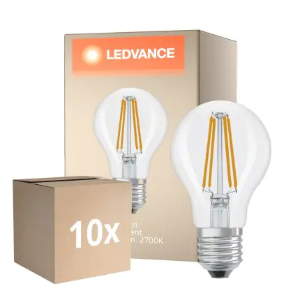 Descrizione Confezione Multipack 10x Ledvance Classic LED E27 Pera Filamento Chiara 5.9W 806lm - 827 Bianco Molto Caldo | Dimmerabile - Sostitutiva 60W