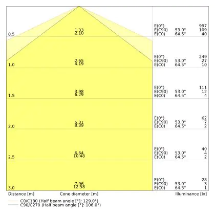 ![]() Il codice colore è una combinazione di resa cromatica (CRI) e colore della luce (Kelvin). La prima cifra indica la resa cromatica (1 = resa del colore molto bassa, 9 = massima resa del colore), mentre la seconda e la terza si riferiscono al colore della luce. Esempio: il codice colore 830 indica una buona resa cromatica (8) e luce bianca calda (3000K). |