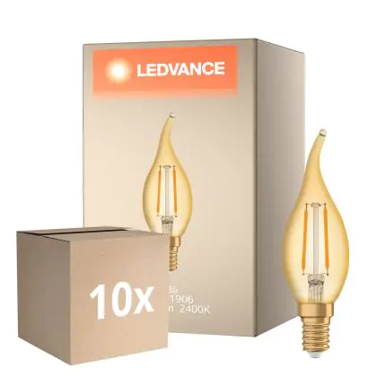 La lampada Confezione Multipack 10x Ledvance Vintage 1906 LED E14 Candela Oro 2.5W 220lm - 824 Bianco Molto Caldo | Sostitutiva 22W è il sostituto perfetto per le tue vecchie lampade 22W con attacco a vite piccolo E14 grazie alla sua tecnologia LED. Passare a LED ti offrirà molti vantaggi!