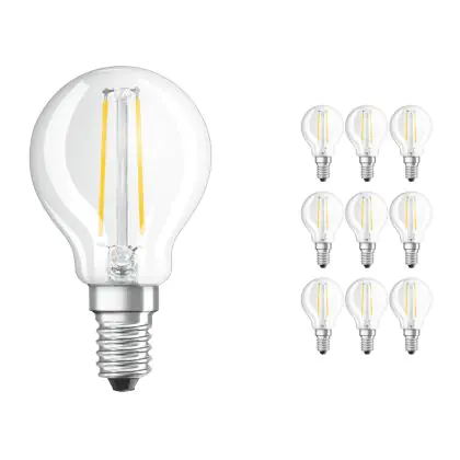 Confezione Multipack 10x Osram CLASSIC LED E14 Pera Filamento Chiara 2.5W 250lm - 827 Bianco Molto Caldo | Sostitutiva 25W