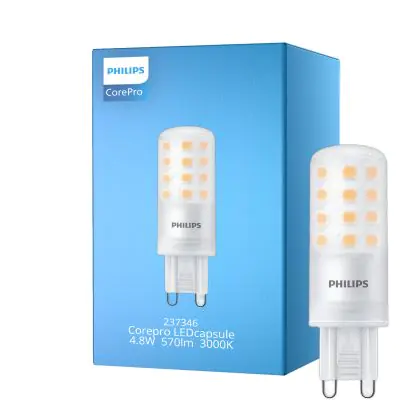 Puoi risparmiare fino al 80% di energia e mantenere i costi di manutenzione veramente al minimo, grazie al minimo consumo di soli 4.8W e una durata della vita media utile di 15000 ore. Le tradizionali lampade alogene G9 hanno una durata di sole 2000 ore. Le lampade LED inoltre non emettono raggi IR e UV che sono dannosi e non produce calore! Installare questa lampada è veramente facile: spingi la vecchia lampada G9 fuori dall’attacco quando si è raffreddata, metti la nuova lampada G9 nell’attacco. Questo prodotto ha un alta qualità Philips e disponibile a partire da . Puoi usare questo prodotto senza aver nessun pensiero grazie al nostro Lampadadiretta.it garanzia totale di 2 anni.