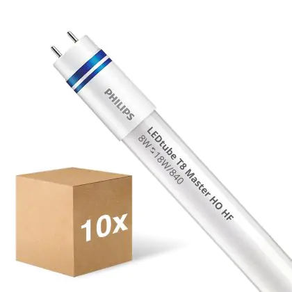 Confezione Multipack 10x Philips Tubo LED T8 MASTER (HF) High Output 8W 1050lm - 840 Bianco Freddo | 60cm - Sostitutiva 18W