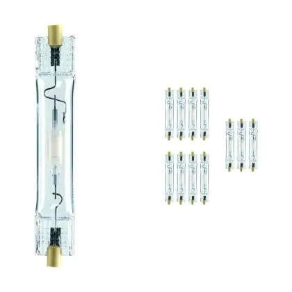 Le lampade a scarica di gas si possono ancora vedere in diversi luoghi, sia in ambienti chiusi che in spazi all'esterno. Un esempio sono i lampioni. Inoltre, le lampade a scarica di gas con un'elevata emissione luminosa (lumen) e una resa cromatica perfetta (90-99Ra) vengono utilizzate in ambienti con soffitti alti, come i capannoni delle fabbriche. Questo prodotto haattacco RX7S e indice CRI di 80-89 - Buona resa cromatica. Si può inoltre scegliere fra apparecchi dimmerabili e non dimmerabili.