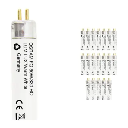 I Confezione Multipack 20x Osram Tubo LED T5 Performance (HF) High Output 36W 5050lm - 830 Luce Calda - | 145cm - Sostitutiva 80W sono tubi fluorescenti di dimensioni inferiori rispetto ai T8 / TL-D. Si prega di controllare sempre la potenza e la lunghezza del tubo, in quanto sono correlati. Nel caso in cui si desideri effettuare una sostituzione di un tubo esausto è necessario acquistare un tubo con le stesse caratteristiche tecniche in termini di dimensioni e potenza. Per un elevato risparmio energetico si consiglia di scegliere soluzioni a LED..