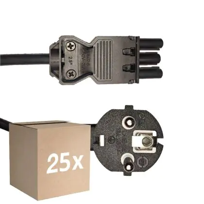 Confezione Multipack 25x Noxion GST - Compatibile Cavo di alimentazione Nero - Femmina + Schuko Europlug - 3m - 3 pole 0.75mm2