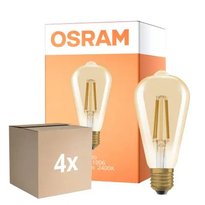La Confezione Multipack 4x Osram Vintage 1906 LED E27 Edison Filamento Oro 7.2W 806lm - 824 Bianco Molto Caldo | Sostitutiva 60W è la perfetta sostituzione per la tua lampada convenzionale 60W con attacco E27 grazie alla sua tecnologia LED. Passare a LED ti offrirà tanti vantaggi!