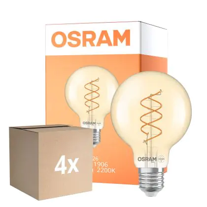 La Confezione Multipack 4x Osram Vintage 1906 LED E27 Globe Filamento Twist Oro 8W 806lm - 922 Bianco Molto Caldo | Miglior Resa Cromatica - Dimmerabile - Sostitutiva 60W è la perfetta sostituzione per la tua lampada convenzionale 60W con attacco E27 grazie alla sua tecnologia LED. Passare a LED ti offrirà tanti vantaggi!