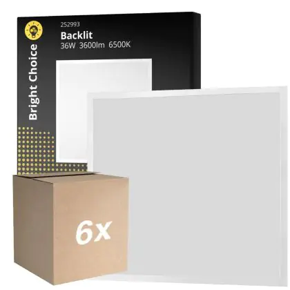 Confezione Multipack 6x Bright Choice Pannello A LED Backlit 36W 3600lm - 865 Luce Del Giorno | 60x60cm - UGR <22