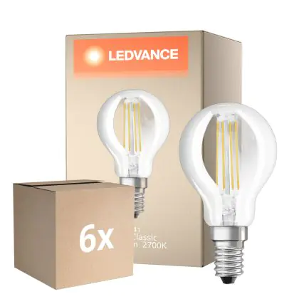 La lampada Confezione Multipack 6x Osram Classic LED E14 Sferica Filamento Chiara 5.5W 806lm - 827 Bianco Molto Caldo | Dimmerabile - Sostitutiva 60W è il sostituto perfetto per le tue vecchie lampade 60W con attacco a vite piccolo E14 grazie alla sua tecnologia LED. Passare a LED ti offrirà molti vantaggi!