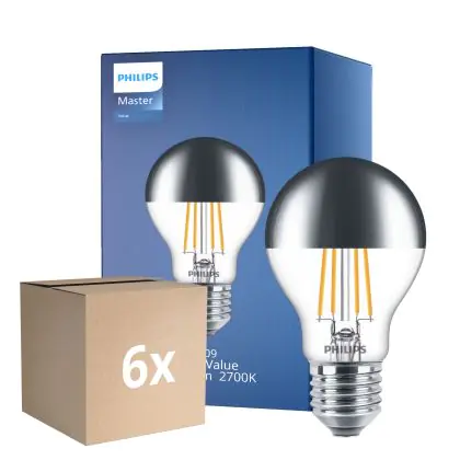 La Confezione Multipack 6x Philips MASTER Value LED Bulbo E27 Pera Mirror 7.2W 650lm – 827 Bianco Molto Caldo | Miglior Resa Cromatica - Dimmerabile - Sostitutiva 60W è la perfetta sostituzione per la tua lampada convenzionale 50W con attacco E27 grazie alla sua tecnologia LED. Passare a LED ti offrirà tanti vantaggi!
