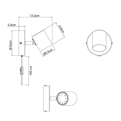 Dimensioni: Diametro: 100 mm; Altezza: 100 mm – compatto e adatto a diversi tipi di soffitto.