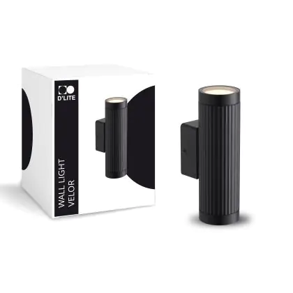 D'Lite Luce Da Parete Velor Aluminium Nero Up & Down | IP54 - Adatto per 2x GU10