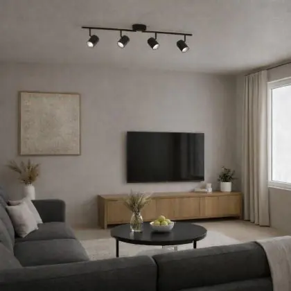 D-Lite Spot Trop Metal Sandy Black si distingue per il perfetto equilibrio tra design e funzionalità. I quattro faretti orientabili consentono un’illuminazione mirata – ideale per mettere in risalto quadri, nicchie o zone specifiche della stanza. La finitura nero sabbia aggiunge un tocco sofisticato e discreto, adattandosi facilmente a palette cromatiche e ambienti diversi. Inoltre, la compatibilità con le lampadine GU10 ti consente di scegliere temperatura e intensità luminosa secondo le tue preferenze.