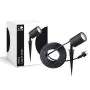 Il design a picchetto consente un facile inserimento nel terreno. Il cavo da 2 metri con spina europea semplifica il collegamento alla rete elettrica.