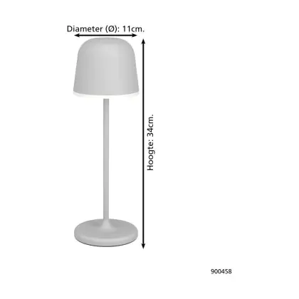 Descrizione Eglo Lampada Da Tavolo Mannera Aluminium Grigio 2W 200lm - 830 Luce Calda - | IP54 - Touch Dimmerabile - USB-C