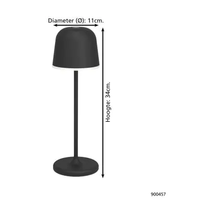 Descrizione Eglo Lampada Da Tavolo Mannera Aluminium Nero 2W 200lm - 830 Luce Calda - | IP54 - Touch Dimmerabile - USB-C