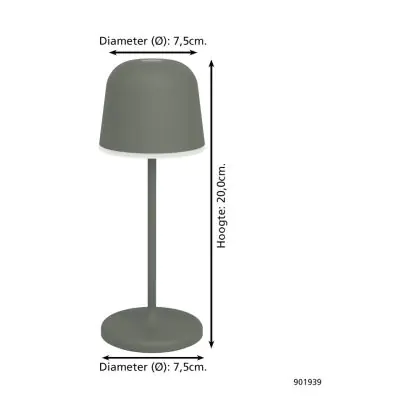 Descrizione Eglo Lampada Da Tavolo Mannera-S Aluminium Verde 1W 170lm - 825-830-840 CCT | IP54 - Touch Dimmerabile