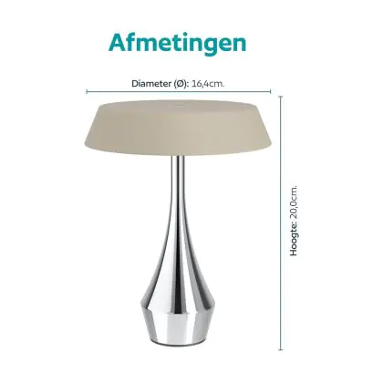 Descrizione Eglo Lampada Da Tavolo Turcio Acciaio Cromo 5W 310lm - 825-830-840 CCT | IP44 - Touch Dimmerabile - USB-C