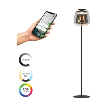 Eglo Lampada da terra Alfero-Z Acciaio Nero 15.5W 2000lm - 827-865 Regolabile Bianca + RGB | IP20 - Zigbee Dimmerabile