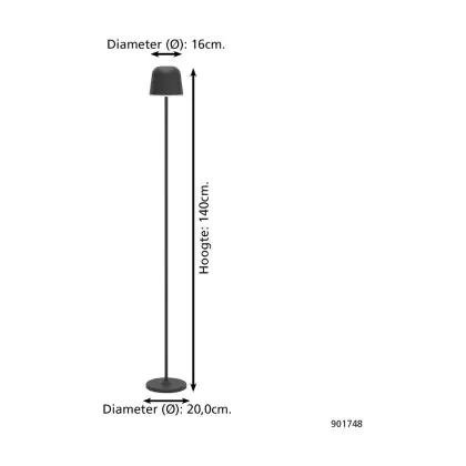 Descrizione Eglo Lampada da terra Mannera-L Aluminium Nero 4W 440lm - 824-830-840 CCT | IP54 - A 3 Livelli Dimmerabile