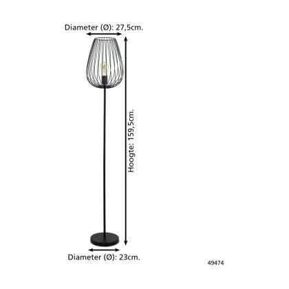 Eglo Lampada da terra Newtown Acciaio Nero | IP20 - Adatto per 1x E27