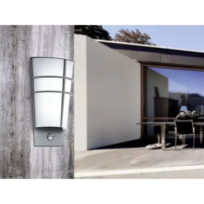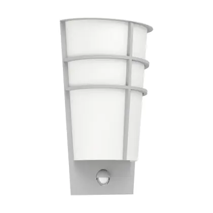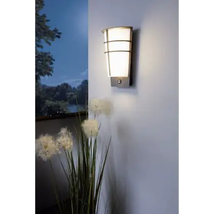 Descrizione Eglo Luce Da Parete Breganzo 1 Acciaio Argento 2W 230lm - 830 Luce Calda - | IP44 - Sensore di Movimento e Luce