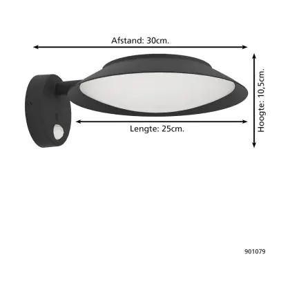 Descrizione Eglo Luce Da Parete Cerrisi Solar Nero 7W 800lm - 830 Luce Calda - | IP65 - Sensore Di Movimento