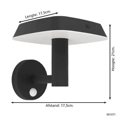 Descrizione Eglo Luce Da Parete Dreoli Solar Nero 8W 970lm - 830 Luce Calda - | IP65 - Sensore Di Movimento