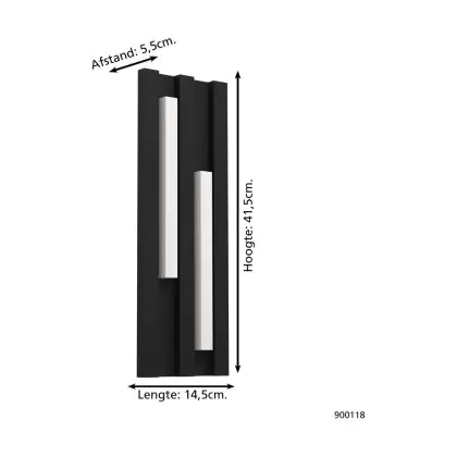 Descrizione Eglo Luce Da Parete Fandina Acciaio Nero 4W 500lm - 830 Luce Calda - | IP44
