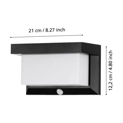 Descrizione Eglo Luce Da Parete Utrera Solar Nero 800lm - 840 Bianco Freddo | IP44 - Sensore Di Movimento