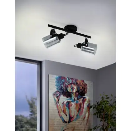Eglo Luce da soffitto Berregas Acciaio Nero Cromo | IP20 - Adatto per 2x E27