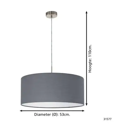 Eglo Luce Pendente Pasteri Acciaio Nichel Satinato | IP20 - Adatto per 1x E27