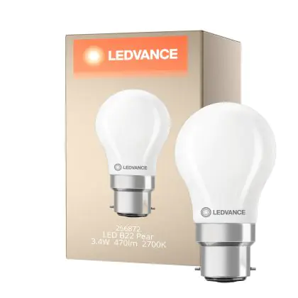 La Ledvance Classic LED B22 Pera Ghiaccio 3.4W 470lm - 827 Bianco Molto Caldo | Dimmerabile - Sostitutiva 40W è la sostituzione perfetta per la tua lampada convenzionale 40W B22. Sostituire con il LED ti offrirà molti vantaggi.