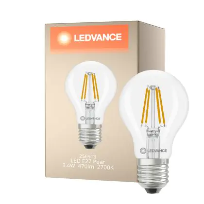 La Ledvance Classic LED E27 Pera Filamento Chiara 3.4W 470lm - 827 Bianco Molto Caldo | Sostitutiva 40W è la perfetta sostituzione per la tua lampada convenzionale 40W con attacco E27 grazie alla sua tecnologia LED. Passare a LED ti offrirà tanti vantaggi!