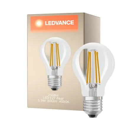 La Ledvance Classic LED E27 Pera Filamento Chiara 5.9W 806lm - 840 Bianco Freddo| Sostitutiva 60W è la perfetta sostituzione per la tua lampada convenzionale 60W con attacco E27 grazie alla sua tecnologia LED. Passare a LED ti offrirà tanti vantaggi!
