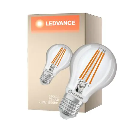 La Ledvance Classic LED E27 Pera Filamento Chiara 7.3W 806lm - 827 Bianco Molto Caldo | Sensore Di Movimento E Luce - Sostitutiva 60W è la perfetta sostituzione per la tua lampada convenzionale 60W con attacco E27 grazie alla sua tecnologia LED. Passare a LED ti offrirà tanti vantaggi!
