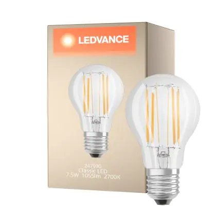 La Ledvance Classic LED E27 Pera Filamento Chiara 7.5W 1055lm - 827 Bianco Molto Caldo | Dimmerabile - Sostitua 75W è la perfetta sostituzione per la tua lampada convenzionale 75W con attacco E27 grazie alla sua tecnologia LED. Passare a LED ti offrirà tanti vantaggi!