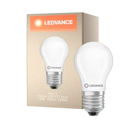 La Ledvance Classic LED E27 Pera Ghiaccio 1.8W 250lm - 827 Bianco Molto Caldo | Sostitutiva 25W è la perfetta sostituzione per la tua lampada convenzionale 25W con attacco E27 grazie alla sua tecnologia LED. Passare a LED ti offrirà tanti vantaggi!
