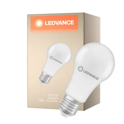 La Ledvance Classic LED E27 Pera Ghiaccio 14W 1521lm - 827 Bianco Molto Caldo | Sostitutiva 100W è la perfetta sostituzione per la tua lampada convenzionale 100W con attacco E27 grazie alla sua tecnologia LED. Passare a LED ti offrirà tanti vantaggi!