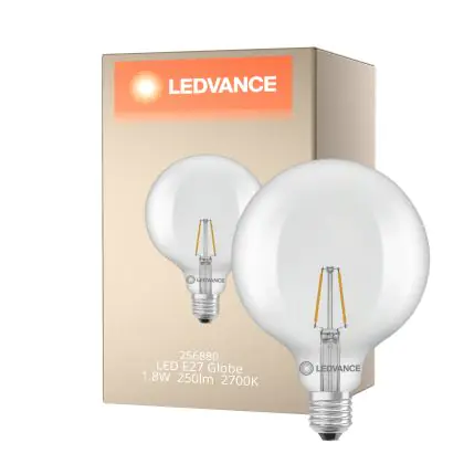 La Ledvance Classic LED Globe LED E27 Globe Filamento Chiara 1.8W 250lm - 827 Bianco Molto Caldo | Sostitutiva 25W è la perfetta sostituzione per la tua lampada convenzionale 25W con attacco E27 grazie alla sua tecnologia LED. Passare a LED ti offrirà tanti vantaggi!