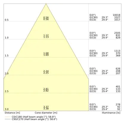 L'apertura del fascio luminoso indica l'angolo del fascio di luce proveniente da una lampada o lampadina. Si misura in gradi (D) e più piccolo è l'angolo, più piccola è l'apertura del fascio di luce.