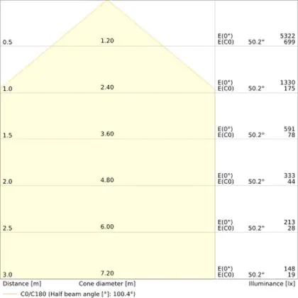 L'apertura del fascio luminoso indica l'angolo del fascio di luce proveniente da una lampada o lampadina. Si misura in gradi (D) e più piccolo è l'angolo, più piccola è l'apertura del fascio di luce.