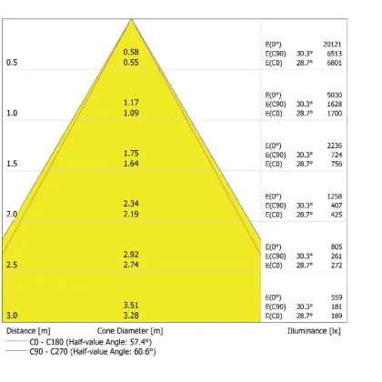 L'apertura del fascio luminoso indica l'angolo del fascio di luce proveniente da una lampada o lampadina. Si misura in gradi (D) e più piccolo è l'angolo, più piccola è l'apertura del fascio di luce.
