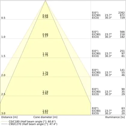 L'apertura del fascio luminoso indica l'angolo del fascio di luce proveniente da una lampada o lampadina. Si misura in gradi (D) e più piccolo è l'angolo, più piccola è l'apertura del fascio di luce.