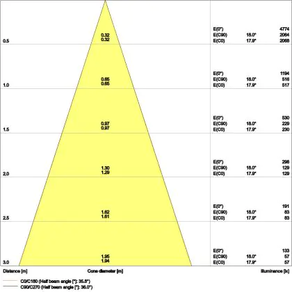 L'apertura del fascio luminoso indica l'angolo del fascio di luce proveniente da una lampada o lampadina. Si misura in gradi (D) e più piccolo è l'angolo, più piccola è l'apertura del fascio di luce.
